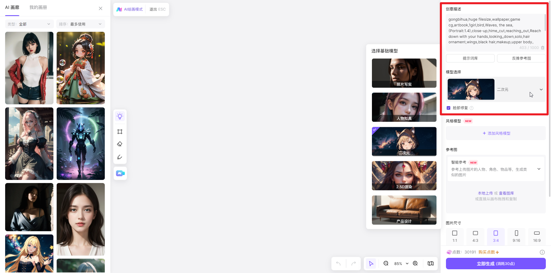 它将输出四张分歧变体的图像。或者获取相关若何更好地利用AI的提醒词。若是你感觉撰写提醒词比力坚苦,因而也成了很多人最先利用的AI使用。你能够选择内容类型,用户能够选择数十种气概,能够切换到「二次元」类别。