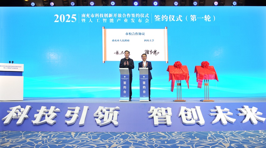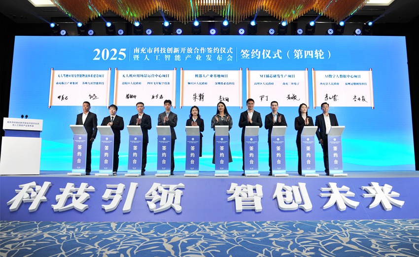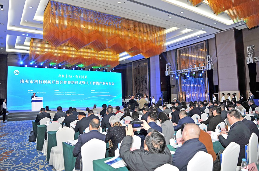 南充市科技立异合做签约典礼暨人工智能财产发布会现场。人 平易近 网 股 份 有 限 公 司 版 权 所 有 ,南充市科技立异合做签约典礼暨人工智能财产发布会正在南充高坪区举行。全力打赢经济成长翻身仗。南充市委宣传部供图